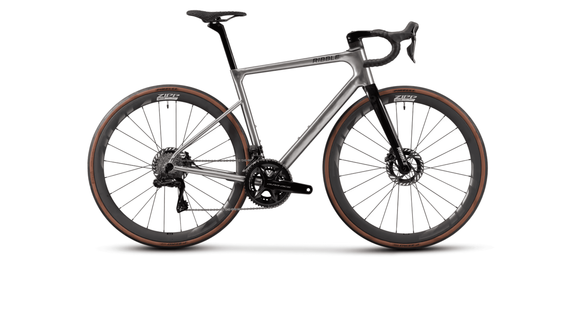 Ribble Allroad Ti Hero – 8.7 kg titanium all-road bike with Shimano Dura-Ace Di2, Zipp 303 carbon wheels, internal cable routing via 3D-printed frame integration, and clearance for up to 38 mm tyres.
