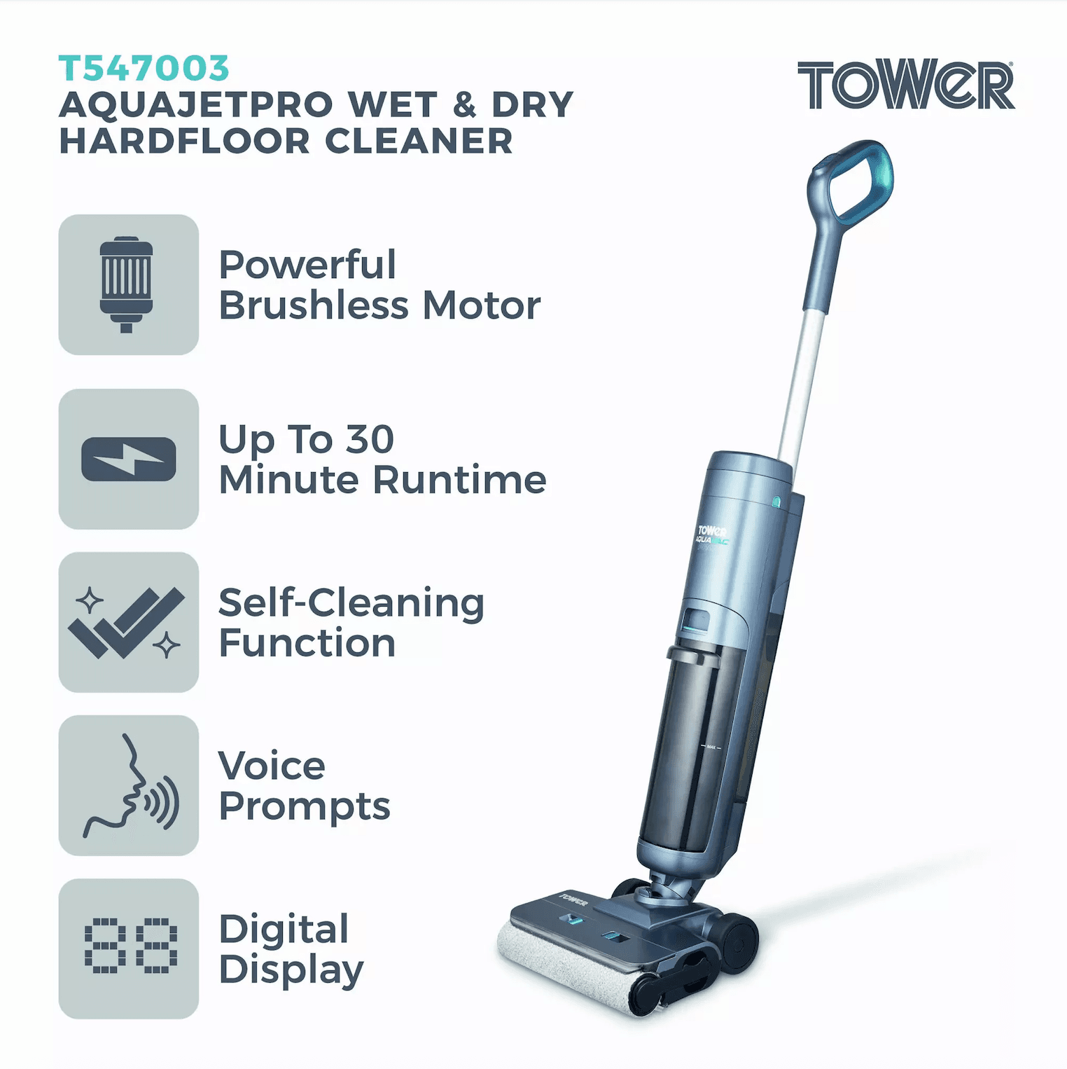 The AquaVac Pro Wet & Dry Hardfloor Cleaner is a cordless all-in-one solution for washing, drying, and refreshing hard floors. With a 30-minute runtime, smart cleaning technology, and self-cleaning maintenance, it makes floor care effortless and efficient.