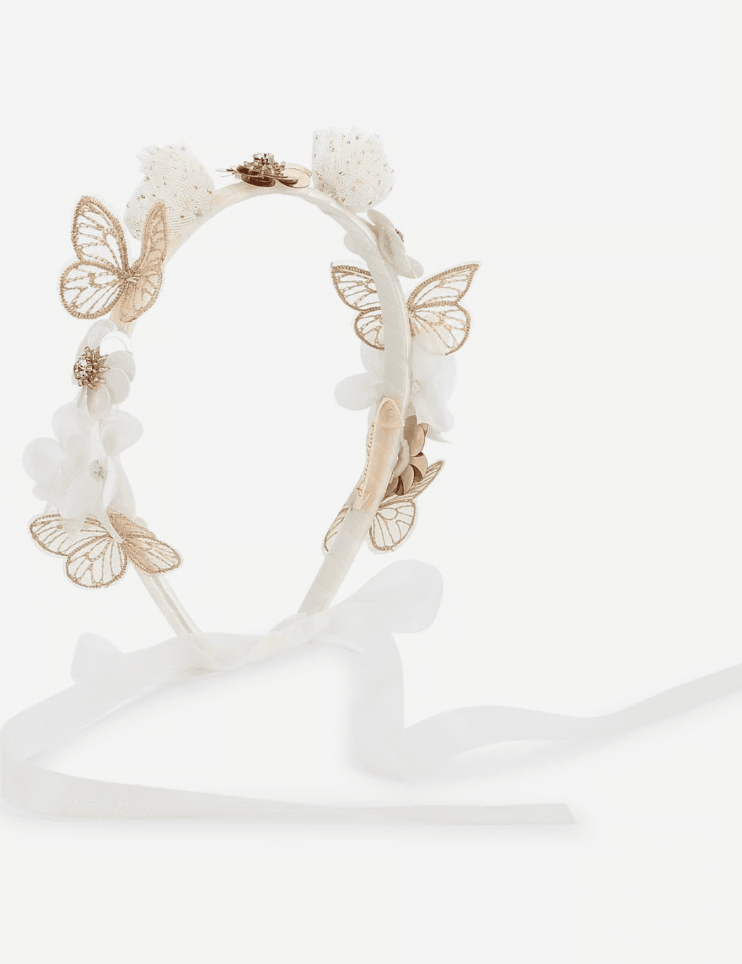 BILLIEBLUSH Girls Flower & Butterfly Headband – Ivory