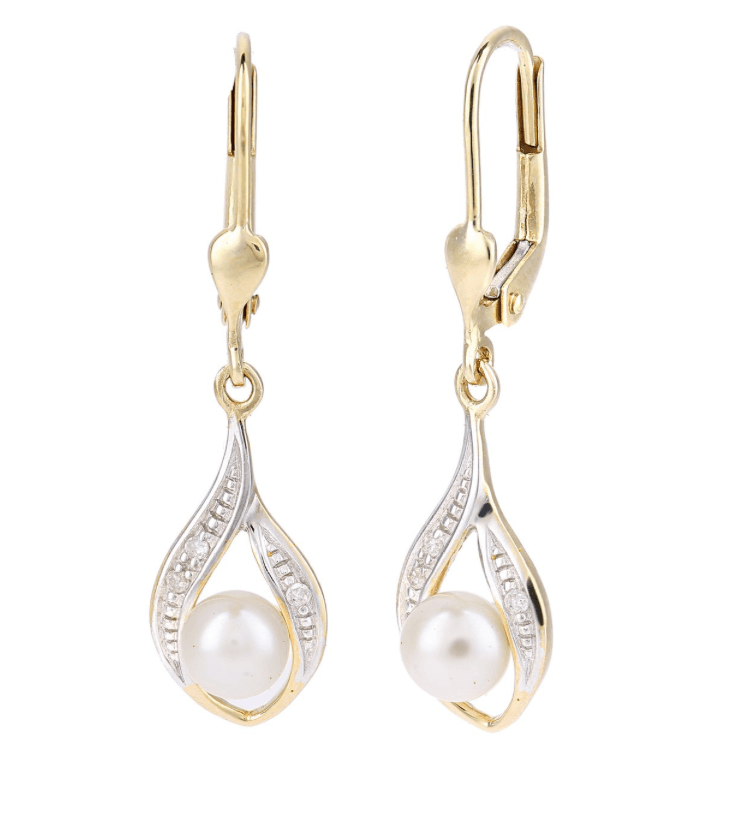 DIAMANT L’ÉTERNEL 9 ct Yellow Gold 0.04 ct Diamonds with White Cultured Pearl Earrings – refined pearl and diamond drop in warm yellow gold.
