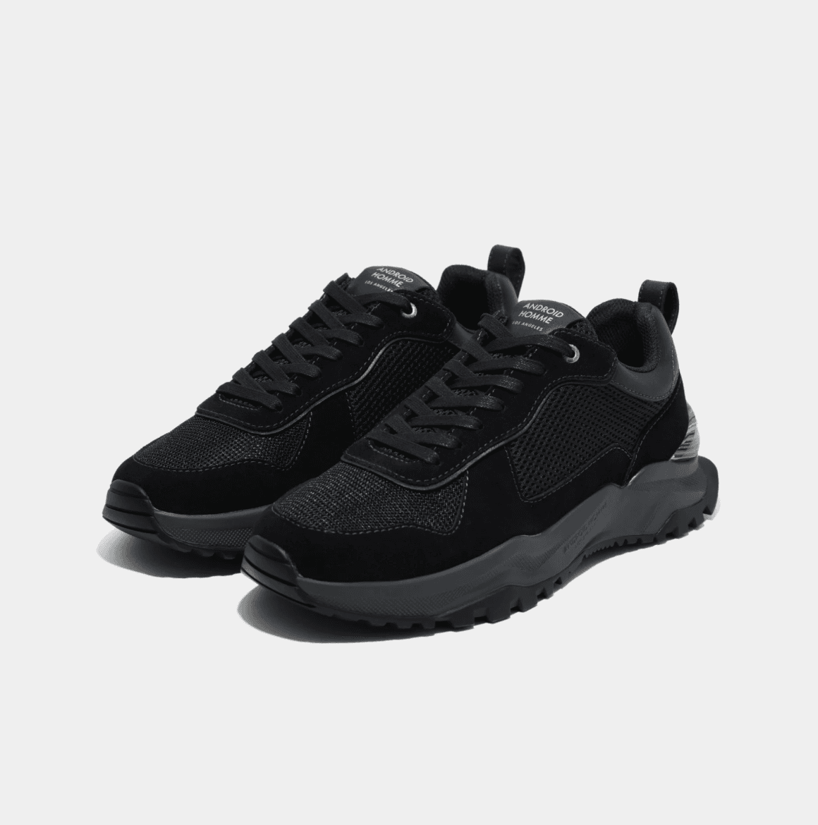 Blend performance and premium design with the Leo Carrillo Space Dye Clip Trainers in Black/Navy by Android Homme