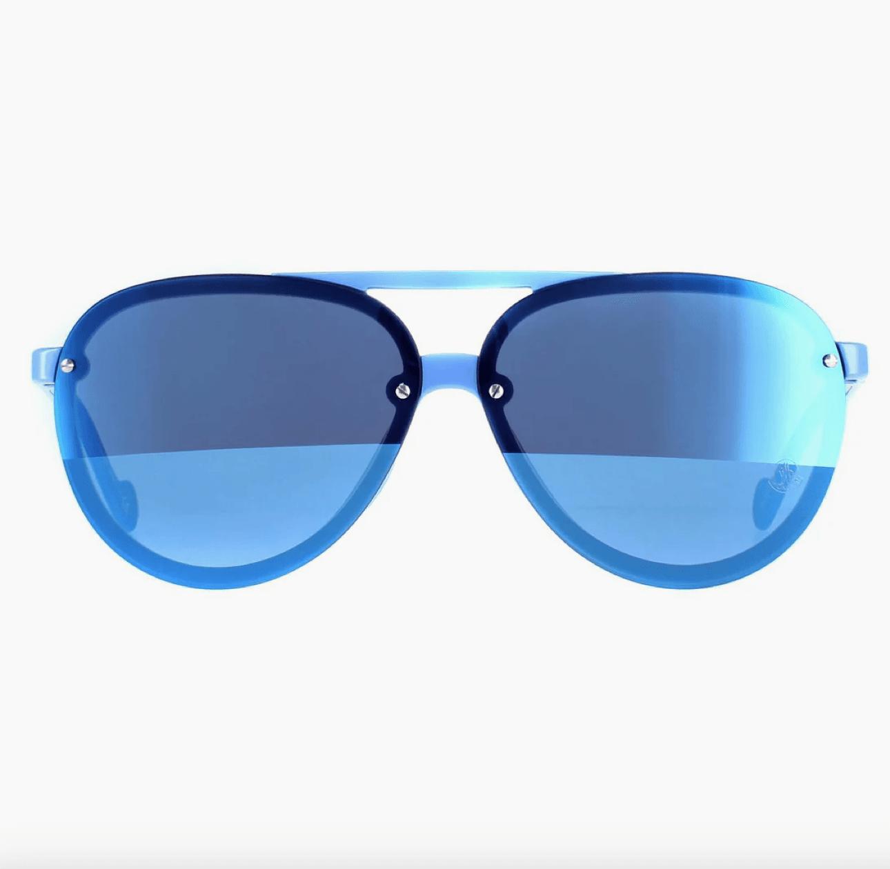 The Moncler ML0063 Sunglasses in Light Blue with Blue Mirror lenses combine bold colour and high-end design—ideal for standout summer style. Now on sale – limited time only at Discounted Sunglasses.