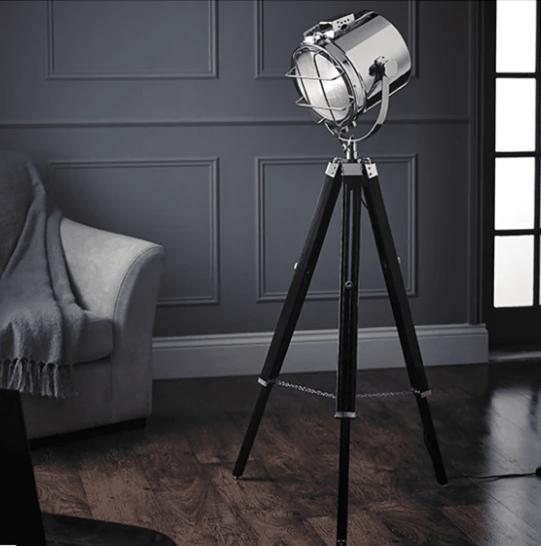 Bring timeless coastal charm to your space with the Nautical Floor Lamp by Elegant Lighting UK – featuring a polished nickel finish and sturdy black wooden tripod legs.