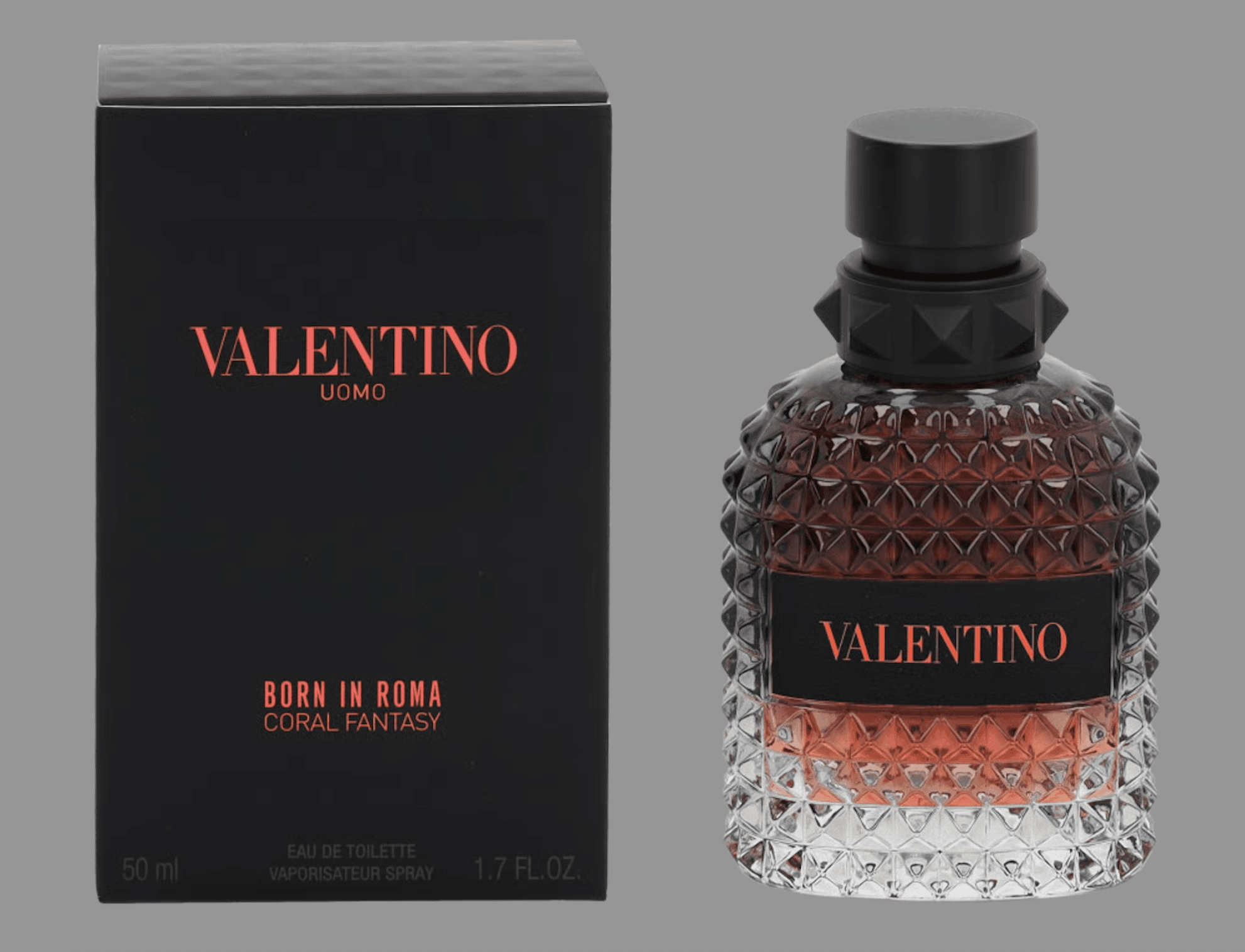 The Valentino Uomo Born in Roma Coral Fantasy EDT Spray (50 ml) captures the energy of a Roman sunset in a refined, contemporary fragrance. Opening with crisp red apple and cardamom, it evolves into aromatic sage and geranium, finishing with warm notes of tobacco, amber, and patchouli. This scent balances brightness and depth, making it perfect for both casual daytime wear and sophisticated evening occasions. Its striking coral-inspired bottle adds a modern statement to any fragrance collection.
